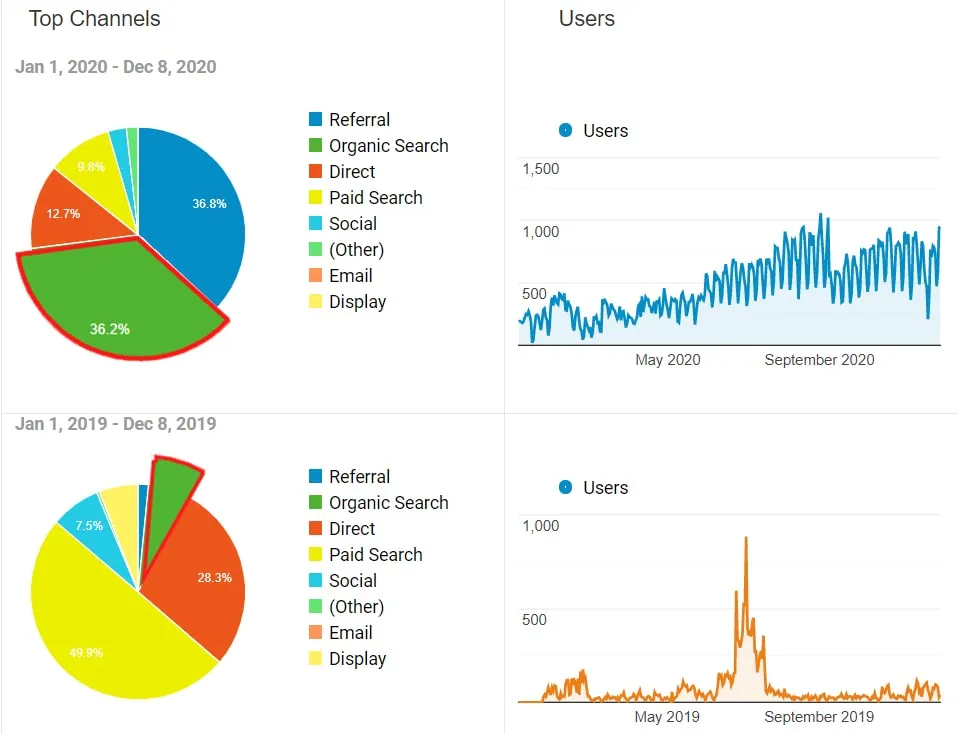 Here’s a Google metric of a business site captured between two different periods showing the traffic shoot up when you create several user-worthy blogs.