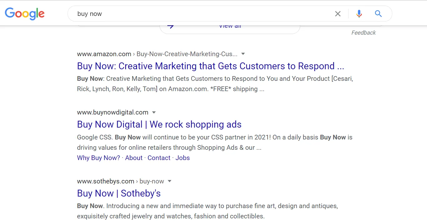 The purchase intent of any user’s search indicates that the user intends to make a purchase soon. Examples can be keywords that include “buy now” or “near me.” If you notice closely, local searches usually tend to have a purchase intent. When a user searches for “vegan restaurants near me,” they intend to eat at a vegan restaurant soon.