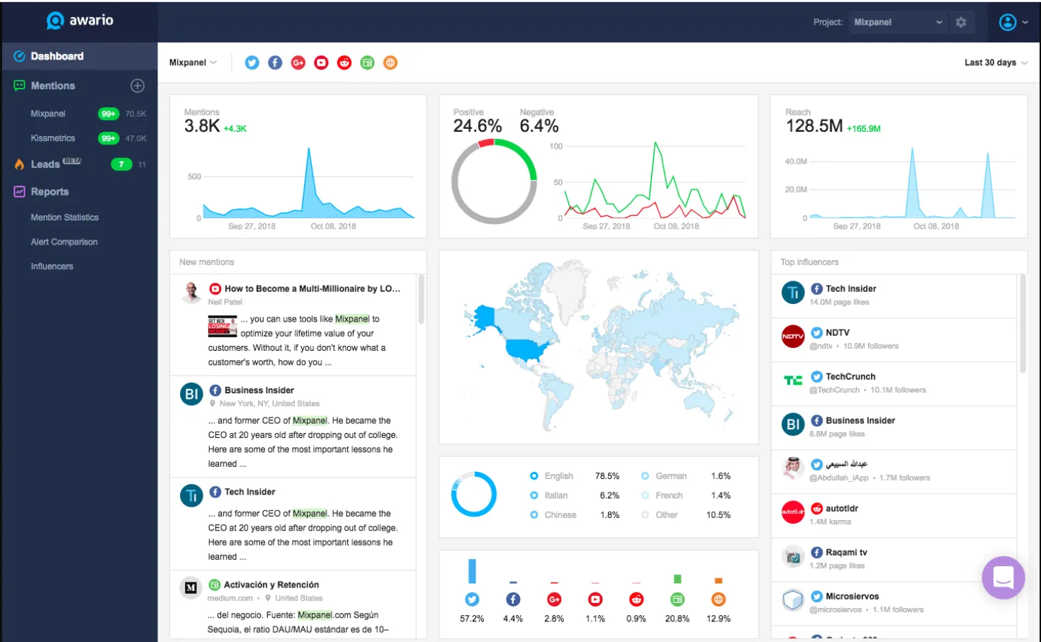 One can think of Mention as an advanced form of Google Alerts. The tool allows you to set alerts for your brand terms similar to Google Alerts. But here, you get real-time updates from all over the web and television.