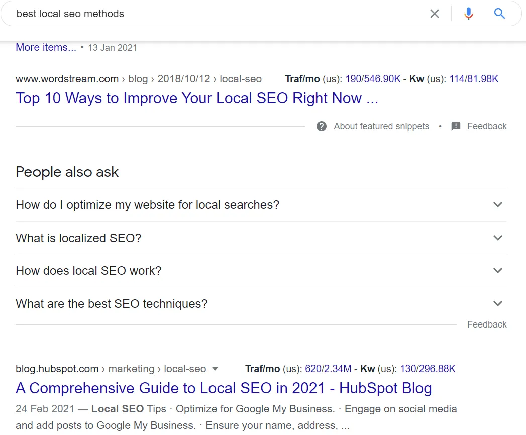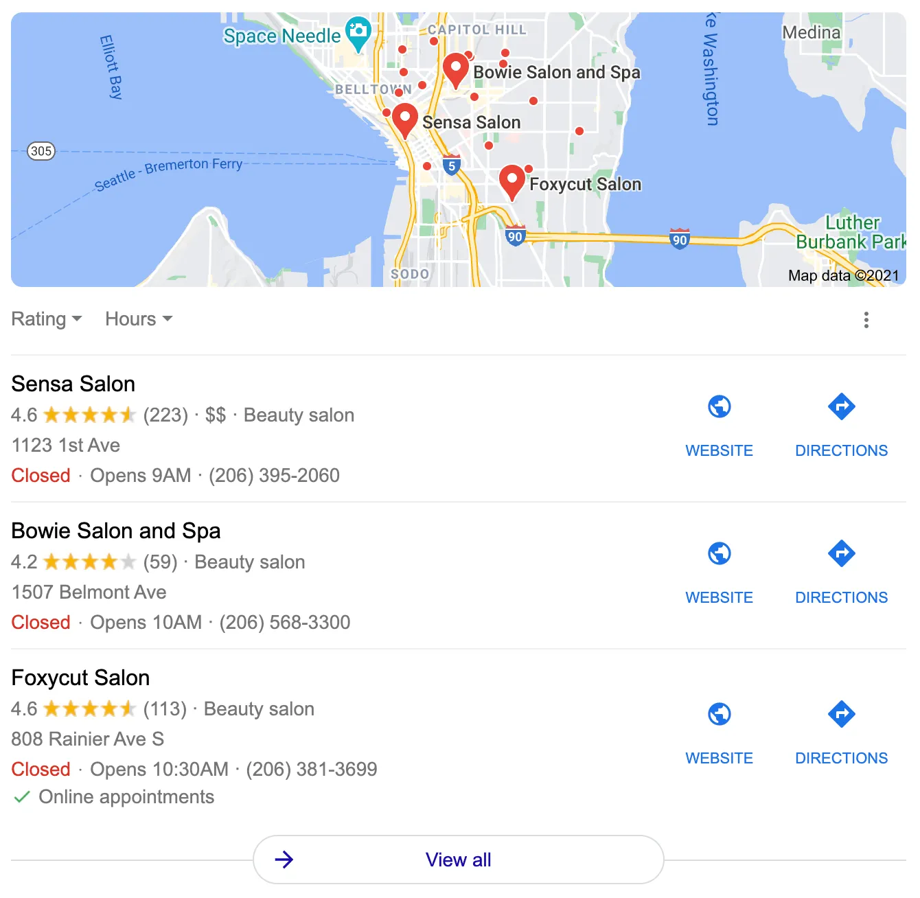 The local 3-pack results have the highest click-through rate for local searches. Establishing a presence in the local 3-pack can draw significant conversions for a business.
