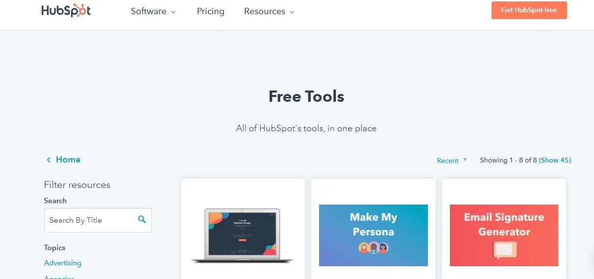 HubSpot is yet another tool that offers you oodles of resources for content marketing. And many of the tools offered by HubSpot are free to access.