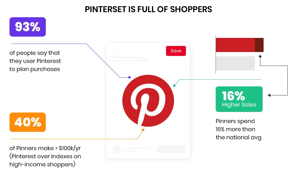 Pinterest, the visual social media platform, is not just used for inspiration. Most users use the platform when they are thinking about making a purchase. 89% of US Pinterest users use the platform with a purchase intent!