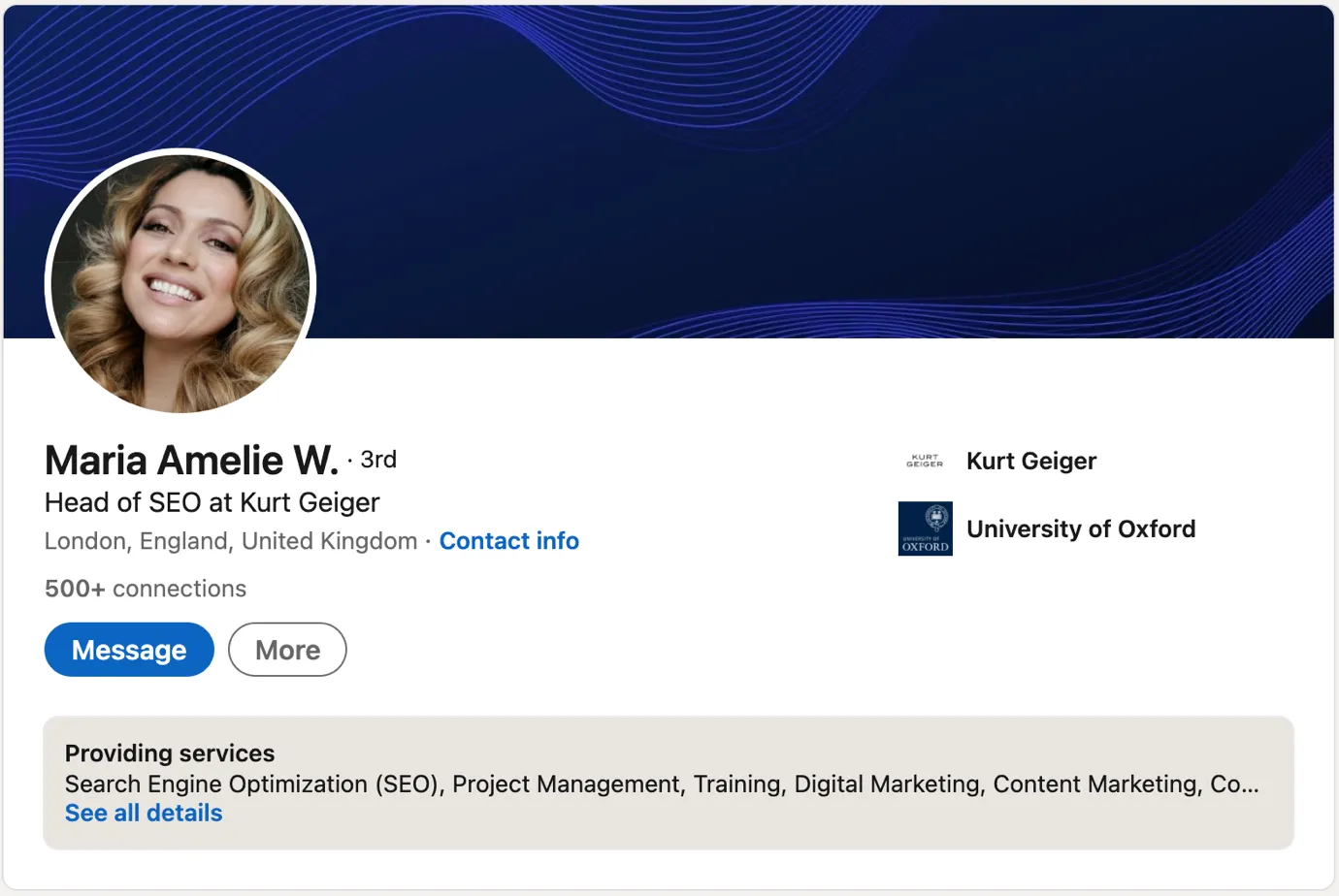 Maria Amelie White heads the SEO division at Kurt Geiger in London. She is an all-star when it comes to SEO.