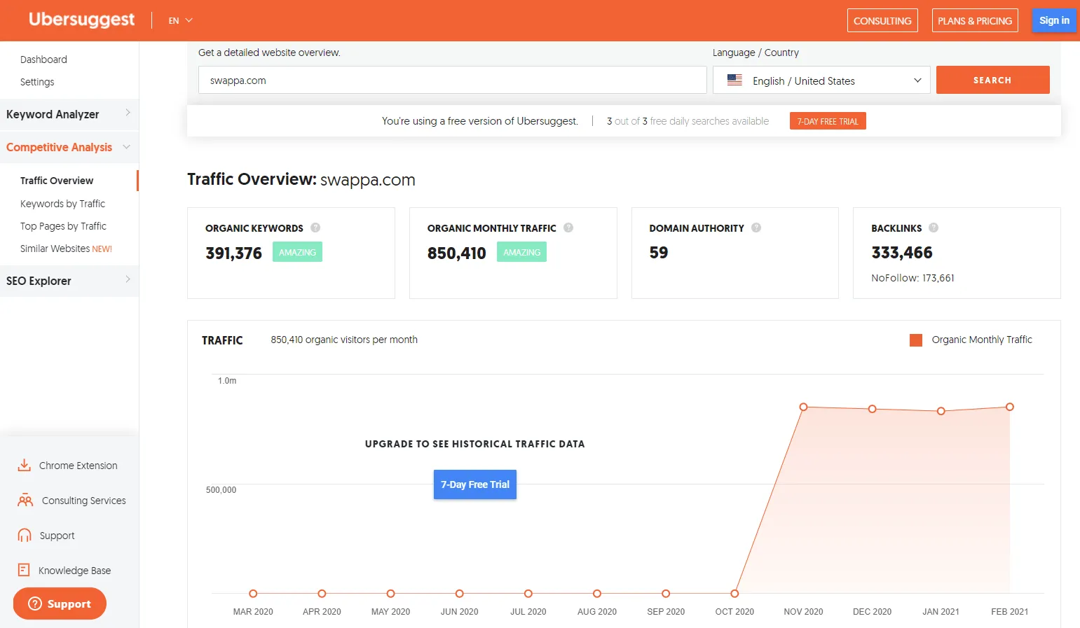 About : Ubersuggest is a popular SEO tool that performs three main functions. These are keyword discovery, competitor analysis, and SEO audit of your site content.