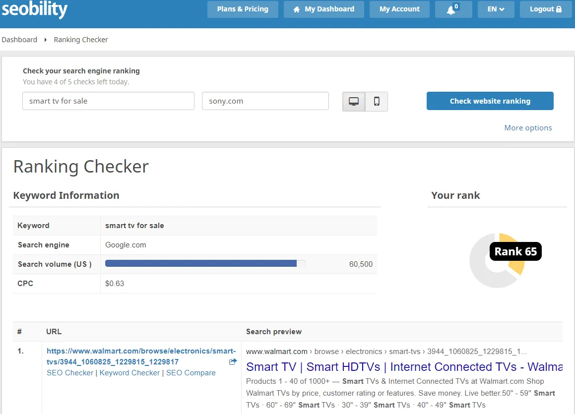 - Rank and keyword checkers let you track keyword performance over time.