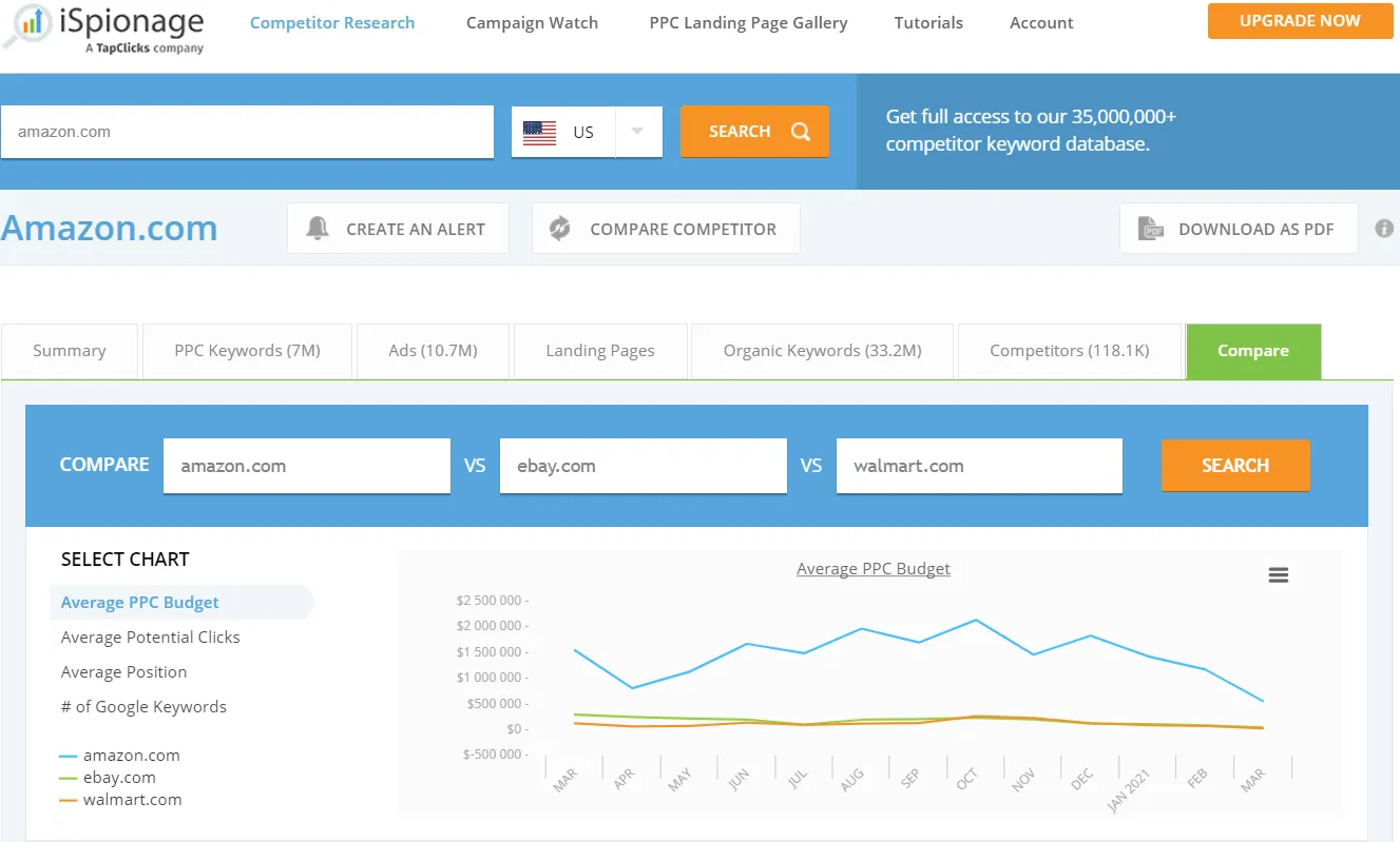 iSpionage lets you closely monitor top competitor keywords and marketing strategies while helping you sculpt a strong SEO and marketing plan for your business.