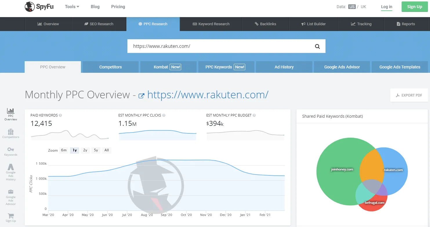 The tool lets you view the list of keywords, ad campaigns, and backlinks used by your competitors to rank higher in online searches.