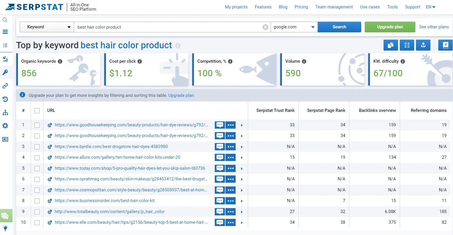 - Use any keyword and identify sites and backlinks that can increase your ranking.