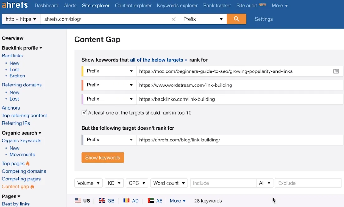 - Tools like content and site explorer help you find content and pitch opportunities across millions of sites.
