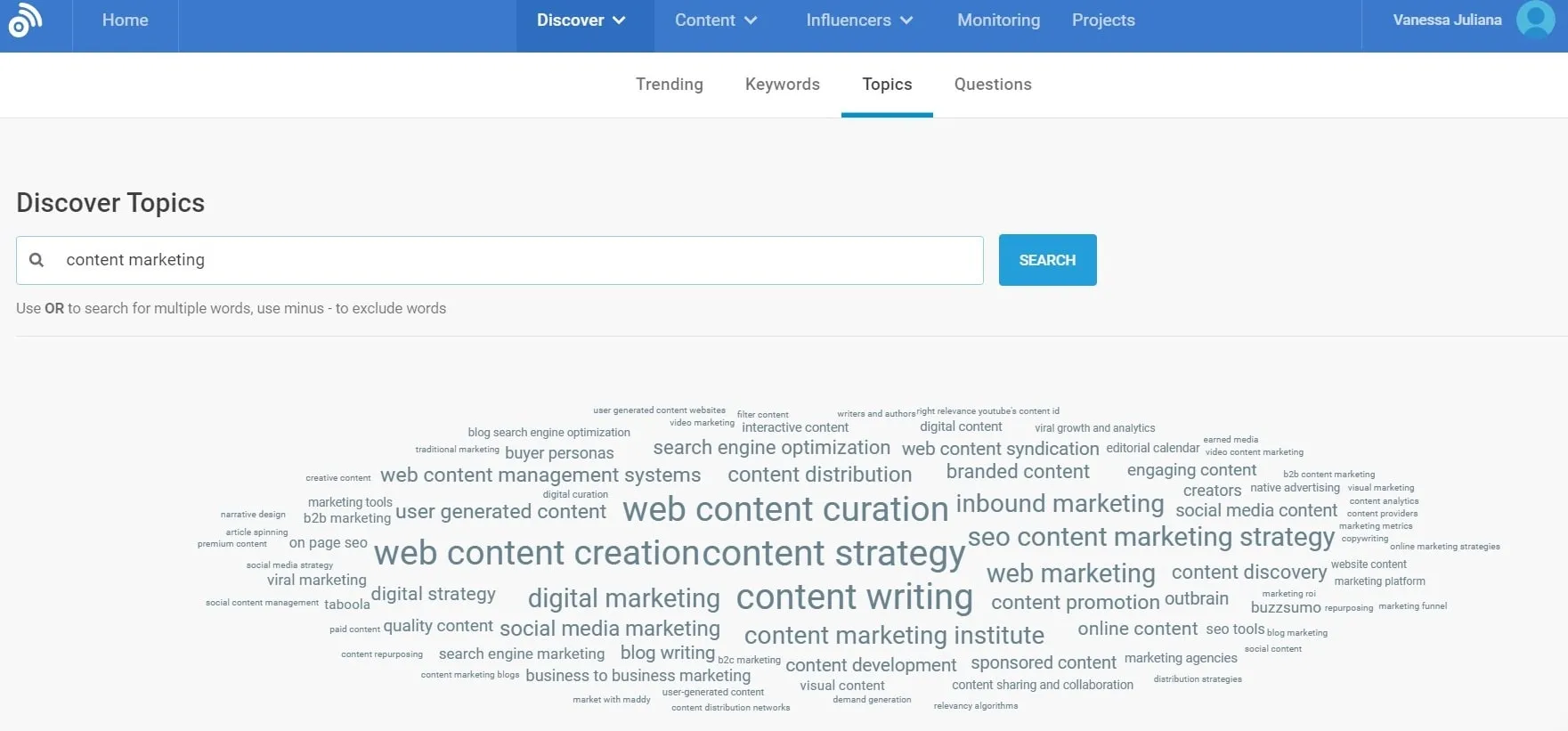 BuzzSumo is a popular tool for content creators. It helps with discovering unique content ideas to engage your audience. The Web Content Analyzer tool lets you get a list of the most popular content on the web linked to a keyword.