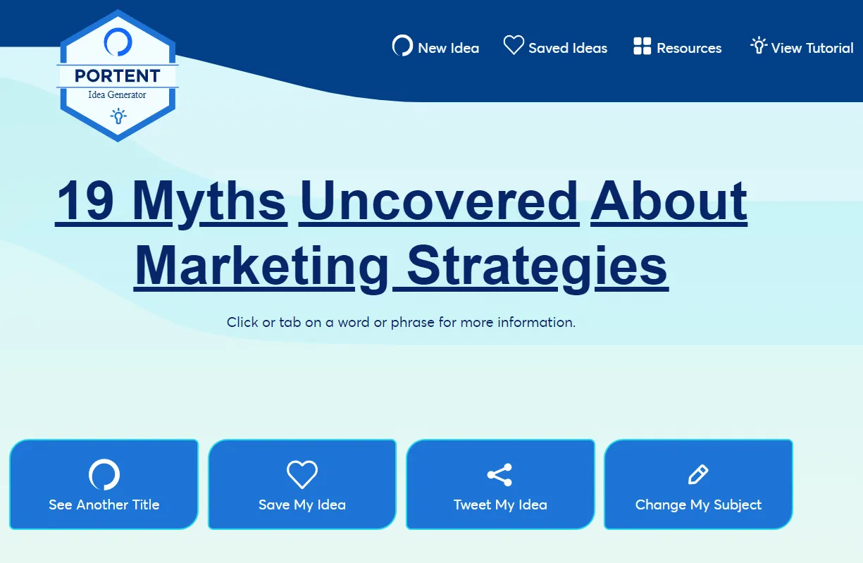 Portent's Content Idea Generator is a treasure trove of new ideas for your blogs and articles. It's free and easy to use. You simply type in a keyword or subject, and the tool generates catchy titles and headings.