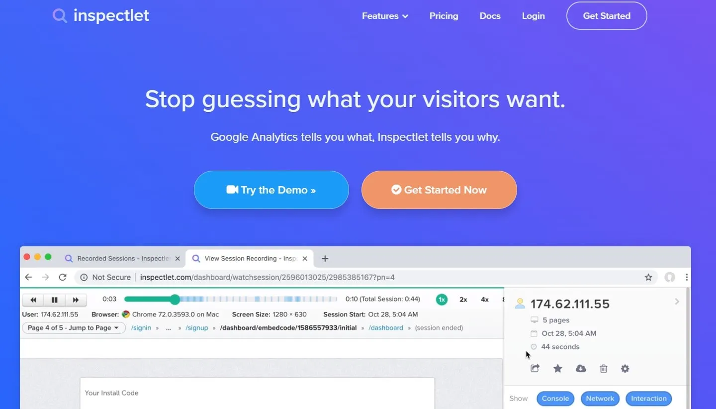 Inspectlet is an innovative tool to help you with content analysis. It uses a unique approach to improve your content. It records a video of user behavior when they are on your site. This is a great way to examine how long they spent on the site and what your site's elements engaged them most.