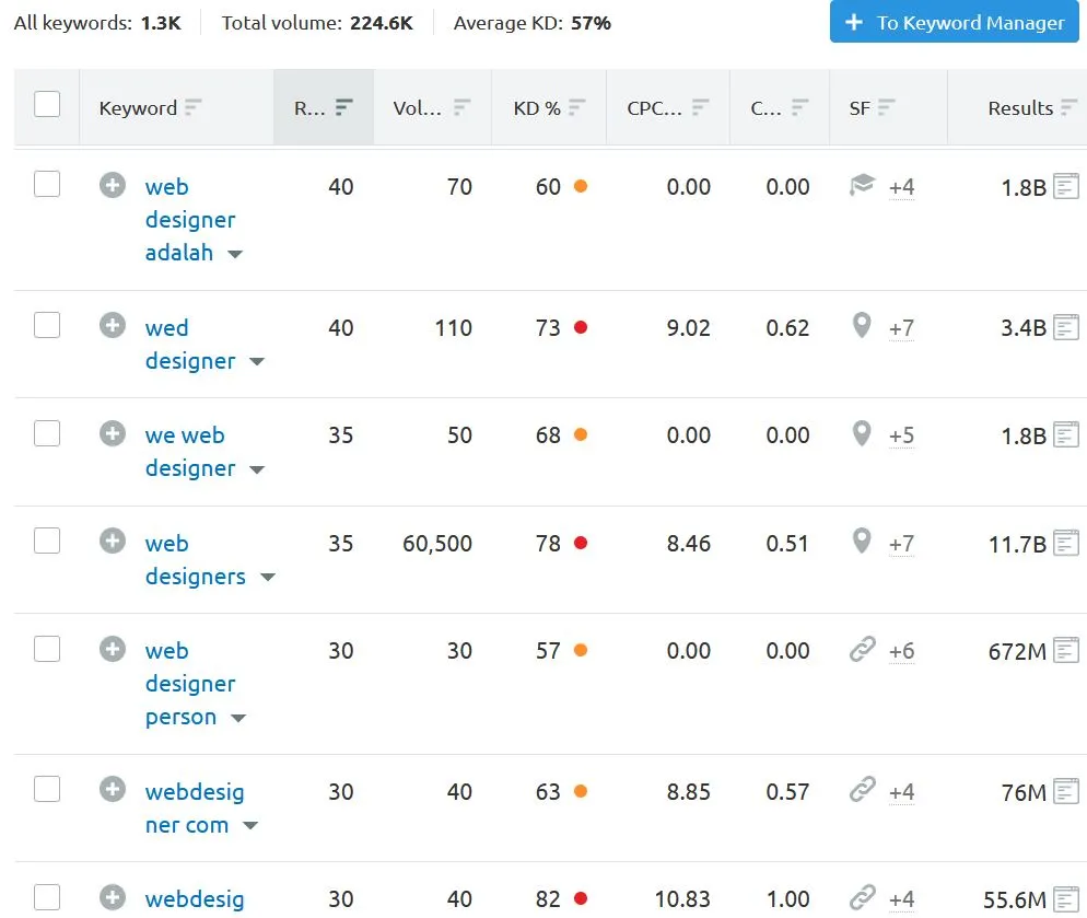 Tip : Don't try to rank for seed words. They are competitive keywords that won't give you traffic even if you sink your entire budget in them.