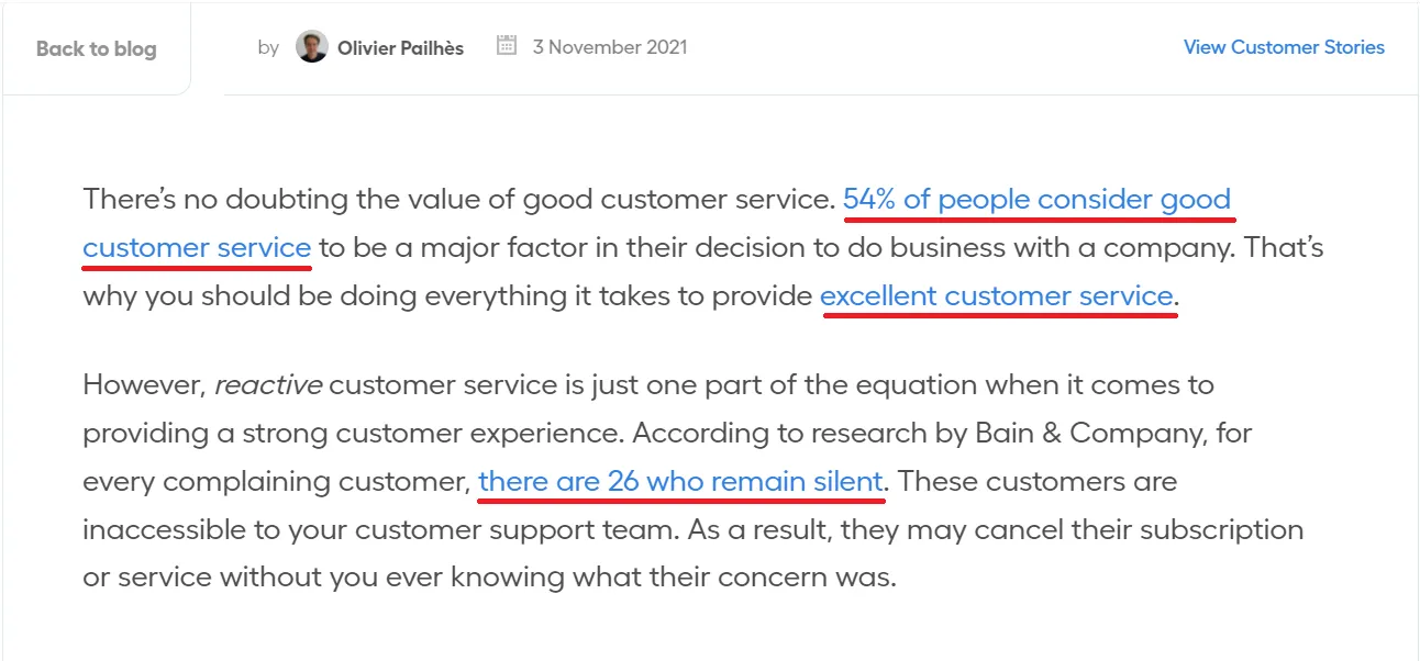 Internal linking refers to the links that connect one page to another in your business website. Below is the screenshot of how internal links look in a blog.