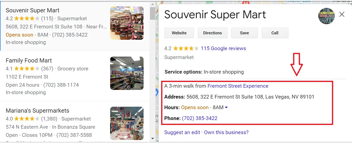 The first thing that gets displayed on the search engine is your Google My Business profile. NAP is the Name, Address, and Phone Number of the store. People who wish to visit your store look up the address, phone number, timings, and other details on the GMB profile.