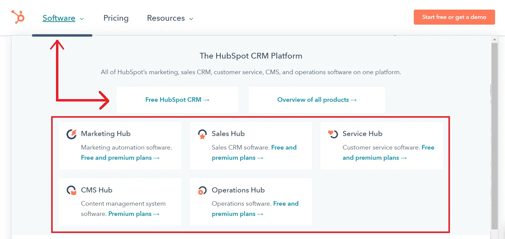 Take a look at Hubspot. They have listed the services tab on the far left, a drop-down offering easy navigation for users.