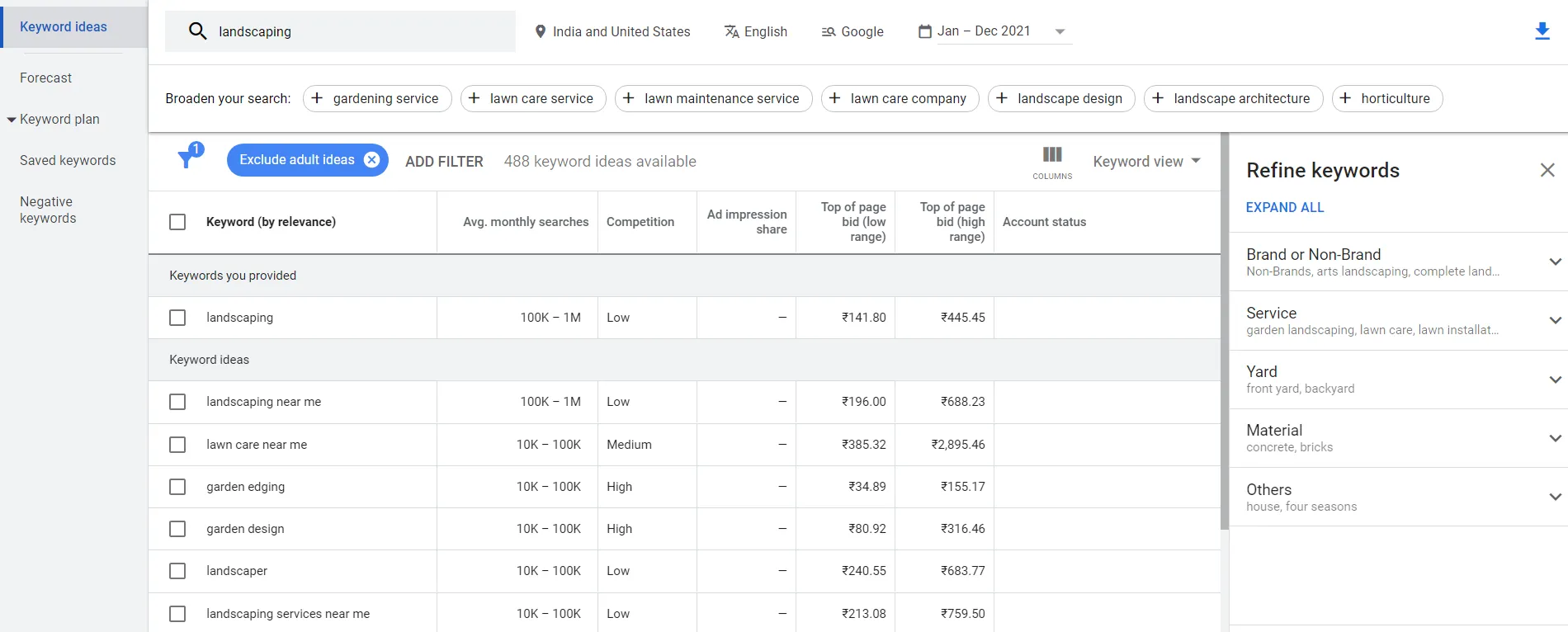 SEO is based on keywords. To rank higher in the SERP, you need to optimize your landscaping website. To find the relevant keywords, start by performing keyword research. Think of long-tail phrases or keywords for your brands.