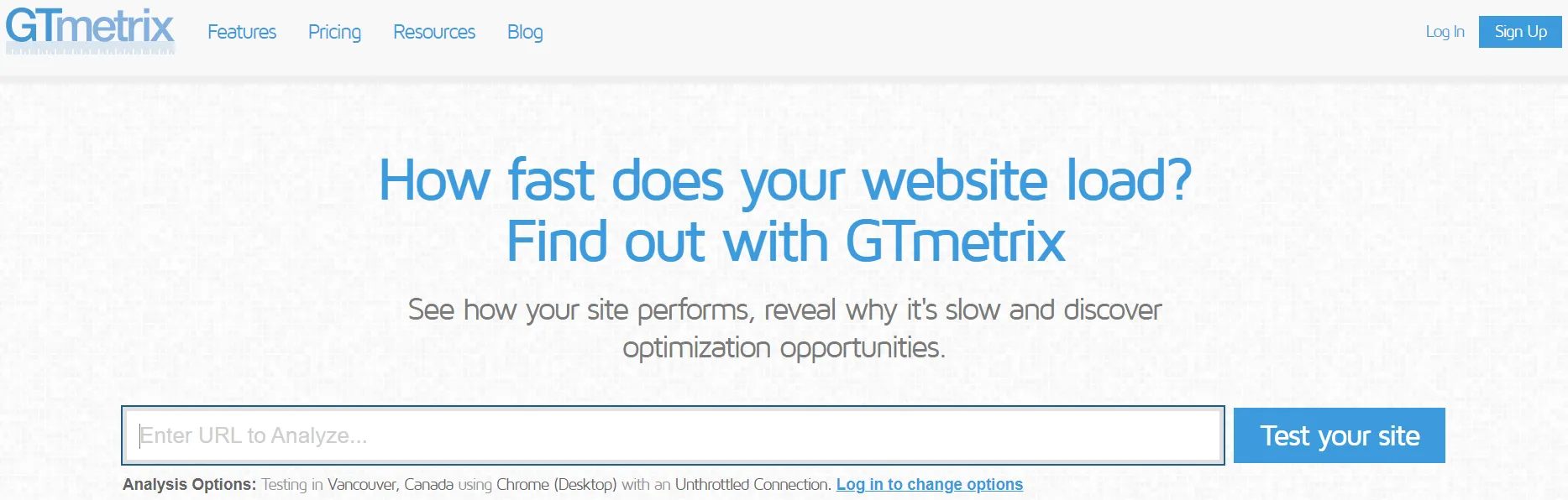 You can test and analyze your website’s loading time using the analysis tool from GTmetrix: