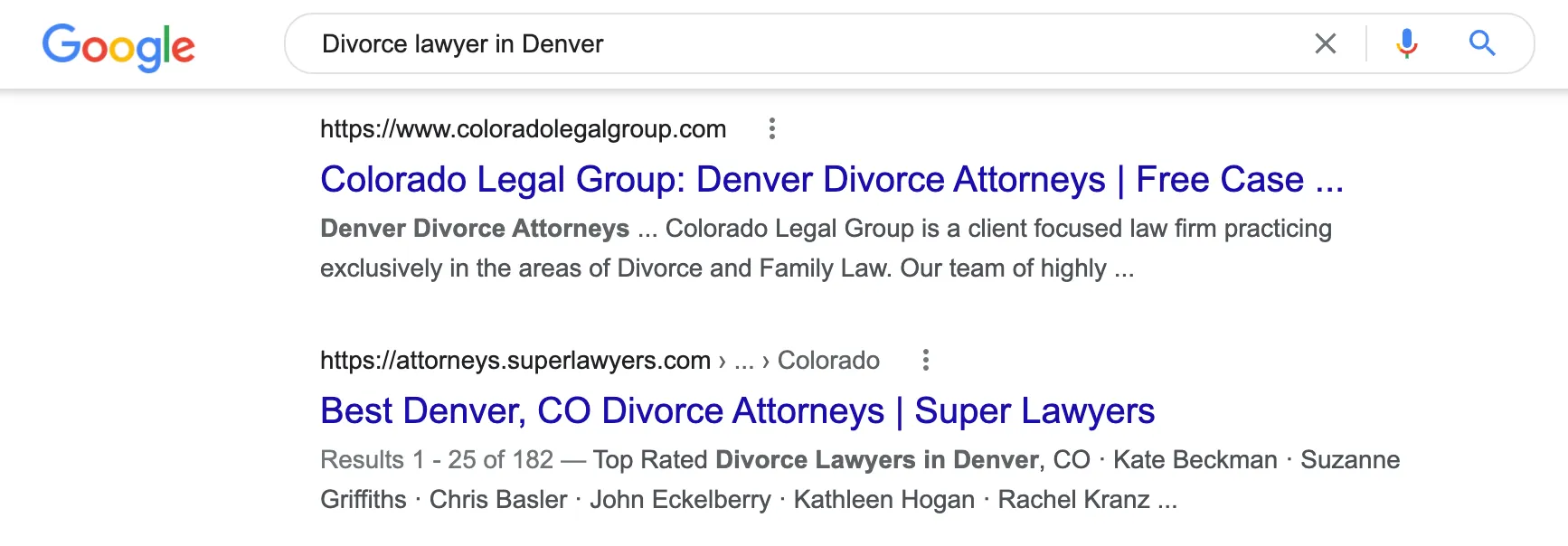 For instance, your potential clients might be searching for divorce lawyers in Denver. You can provide them with the relevant information by writing an elaborate blog on the topic "how to get a divorce in Denver." It will give you access to potential clients looking for divorce lawyers in Denver.