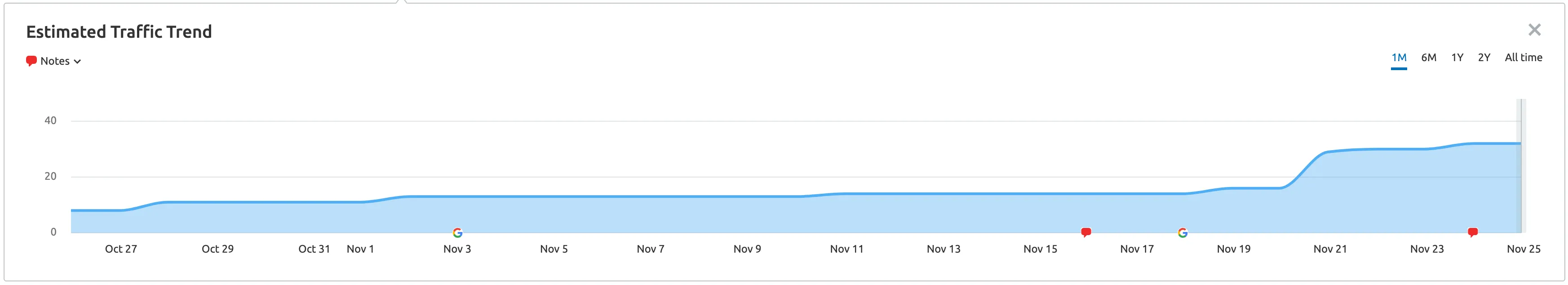 For E.g., Take a look at the insider screenshot from SEMRush - a traffic monitoring tool.