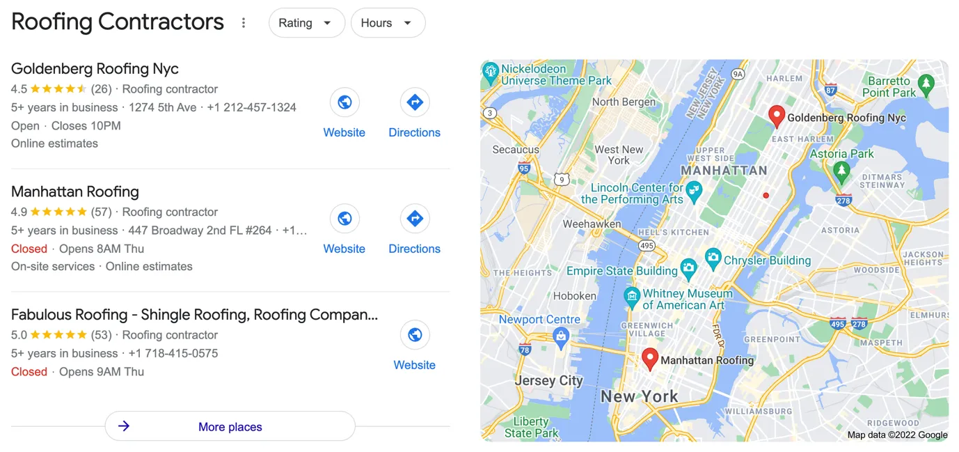 Here is how the Local 3-Pack results look when a user searches for "Roofing Contractors in New York" -