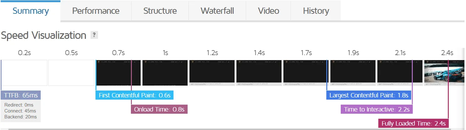 Page loading speed of a website can be checked freely on GTmetrix or Google Pagespeed insights. Here’s an example of how fast the lamborghini website loads.