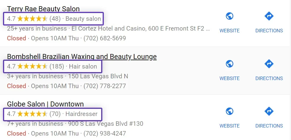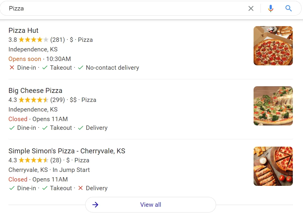 Reviews also became a rich snippet. They started displaying it on the side of the search results and could indicate how popular a business was.