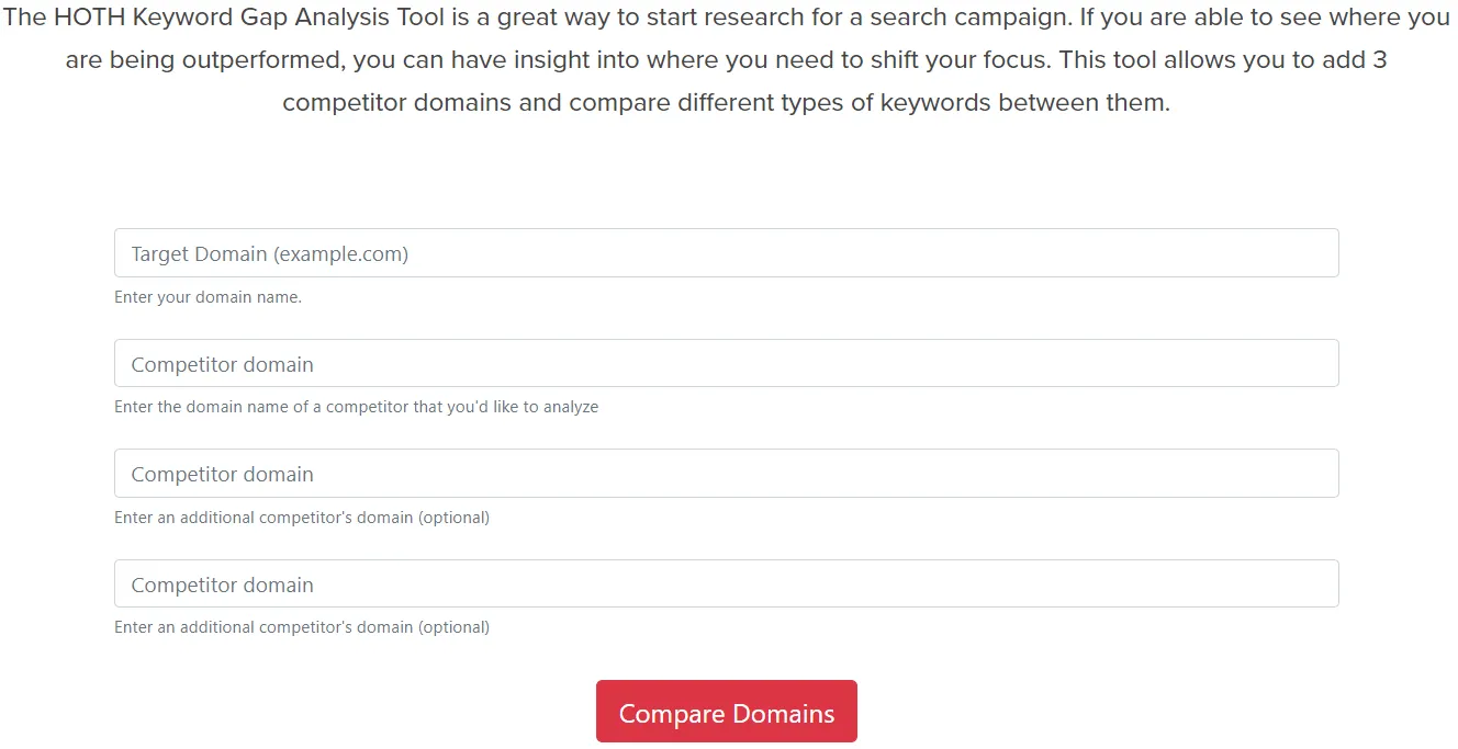 You can use SEMRush or The Hoth keyword gap analysis tools to compare top-ranking local competitors to analyze the missing keywords on your website.