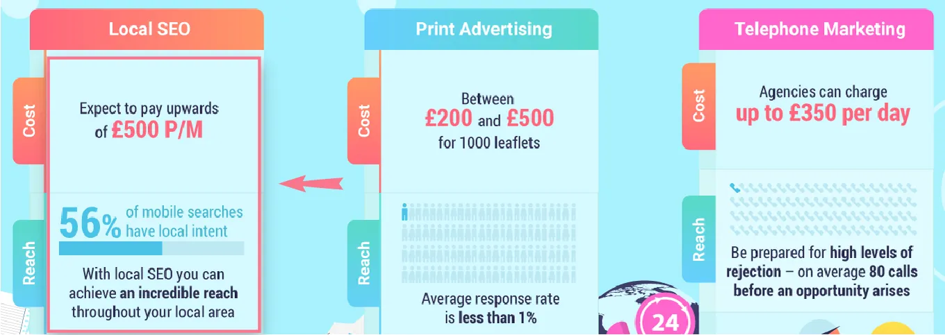 A significant difference when considering other methods like paid ads is the lifespan. Local SEO is organic and has minimal upkeep or maintenance compared to paid ads.