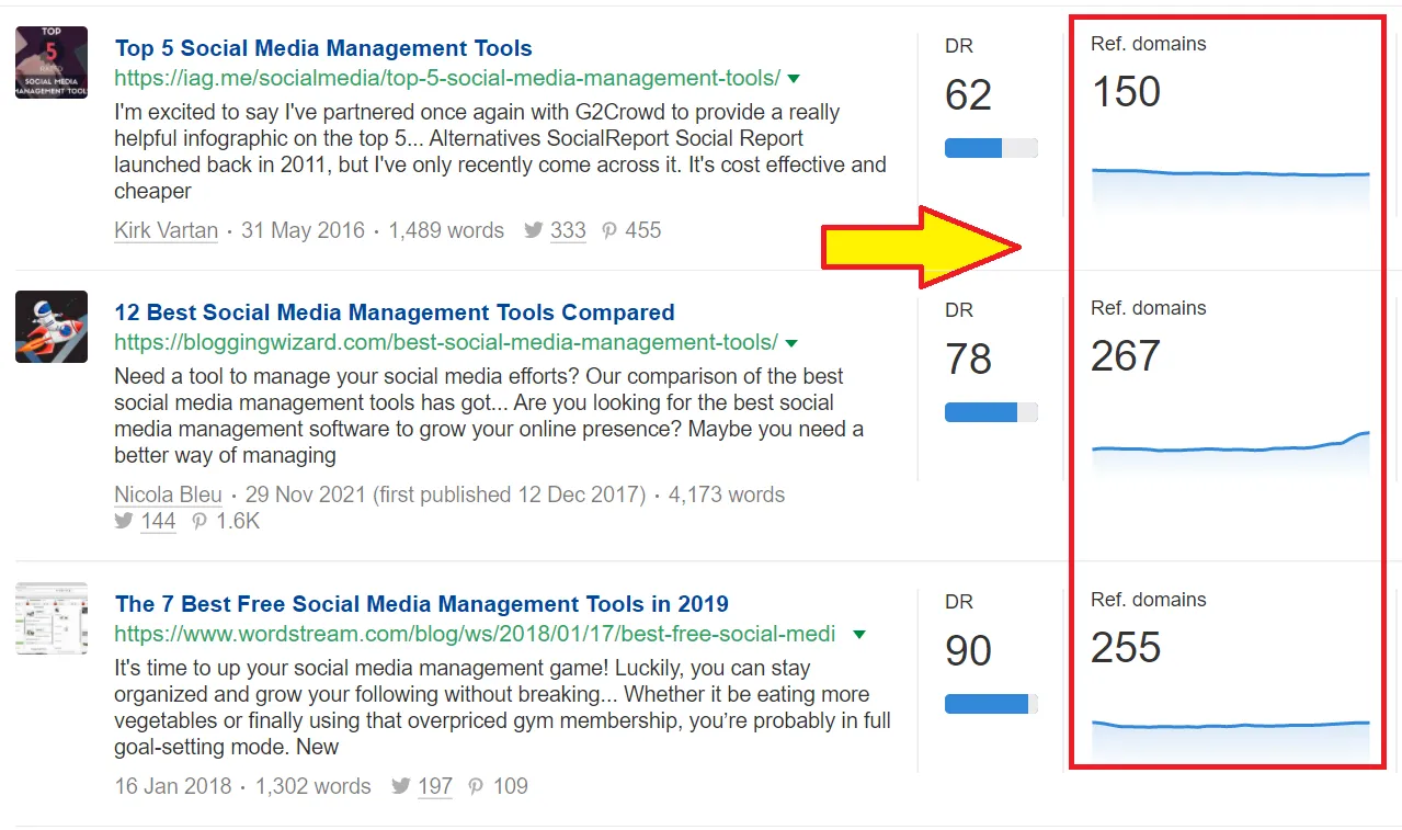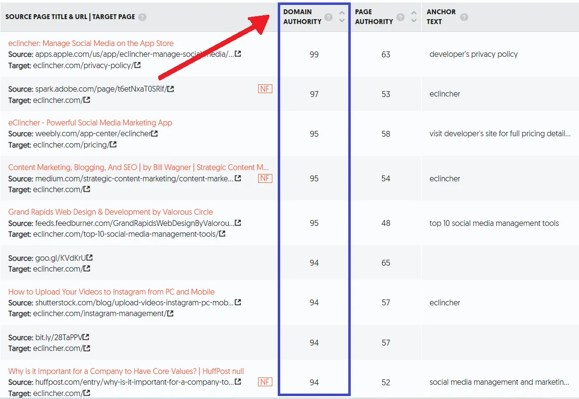 Domain authority is the level of trust that a particular domain's website has with search engines and can be improved through various means such as link building, co-citation, and content marketing. This is why all businesses give sheer importance to gaining backlinks from high DA sites, as shown in the example below.