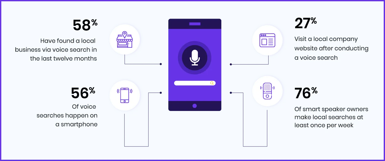 Did you know that 58% of consumers use voice search to look for a local business? That is why optimizing your site for voice search can help you quickly rise the local rankings.