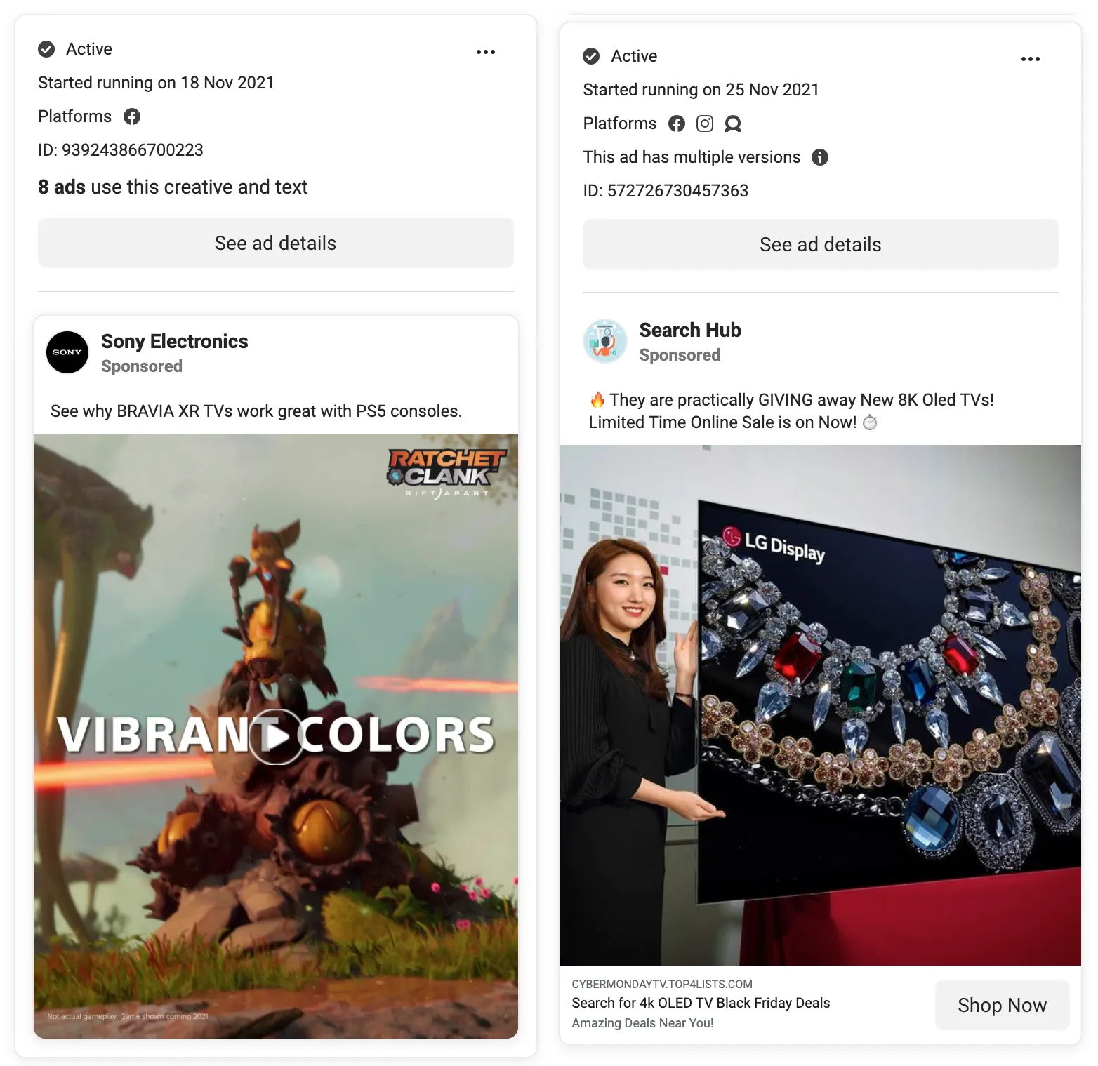 E.g., Take a look at the Facebook remarketing ads run by Sony electronics.