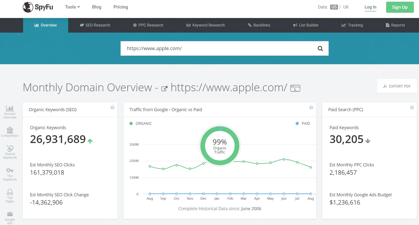 If you're looking for an expert tool for PPC competitor research, SpyFu is the one for you. The tool gives you the visibility of your competitor's decision-making while running their ads. This means you get to know about their ad history, keywords, negative keywords, split tests, and more.