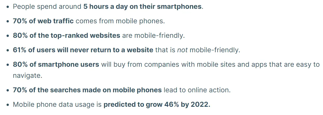 Here are some latest stats by review 42 that suggest why businesses shouldn’t neglect mobile-friendly sites.