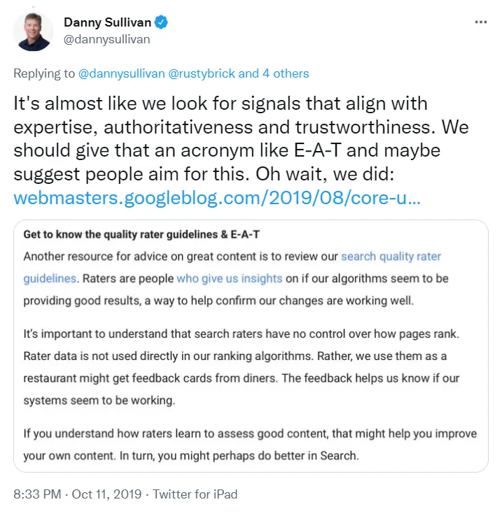 It’s confirmed by Danny Sullivan, the search engine adviser at Google.