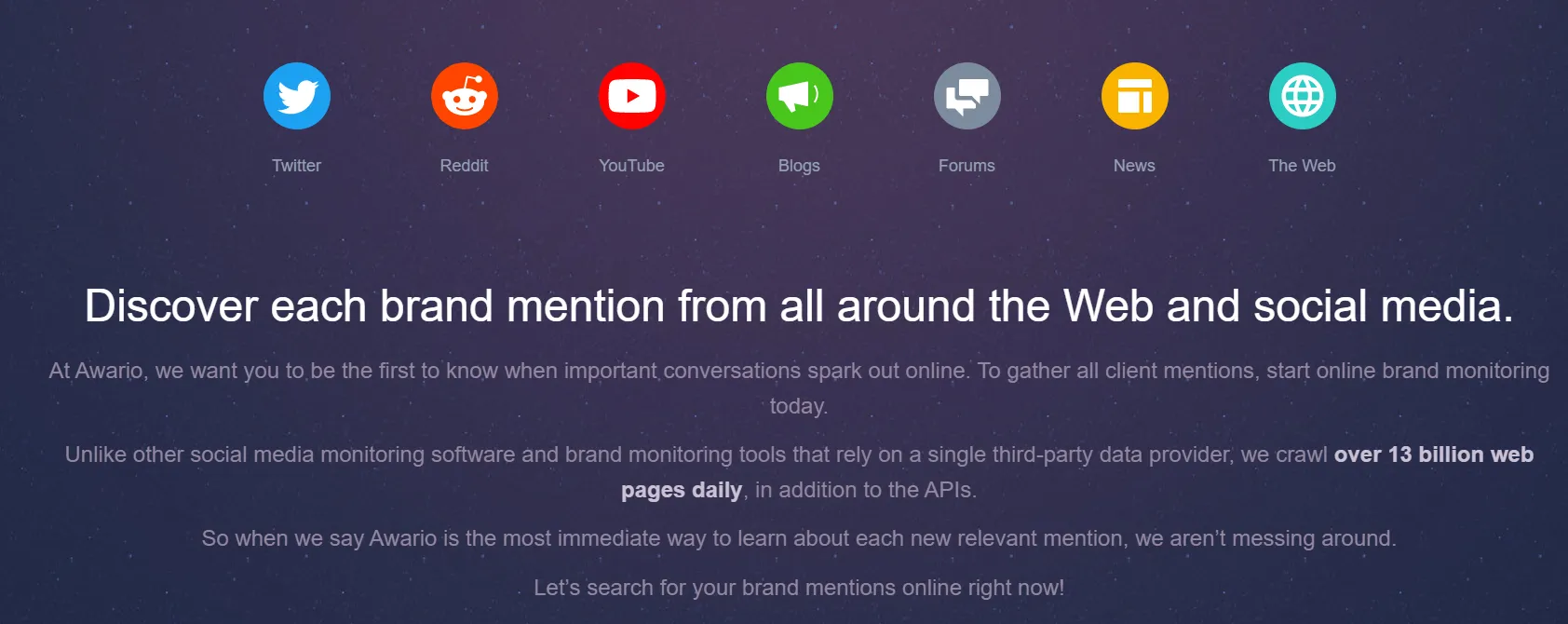 Awario is the best freemium tool in the market that notifies your brand mention anywhere on the web.