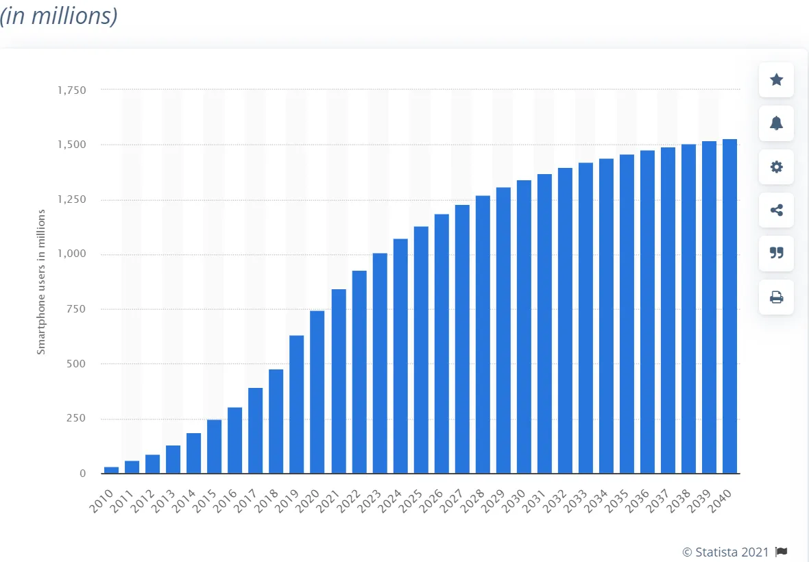 As per Statista, it’s forecasted that mobile users worldwide will grow beyond 2 billion by 2040.