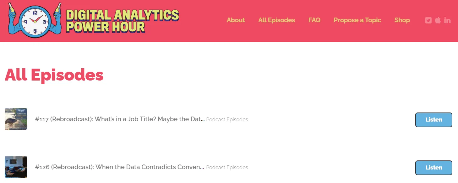 If you’re looking for a comprehensive SEO podcast but is quirky and funny, The Digital Analytics Power Hour is a good bet.
