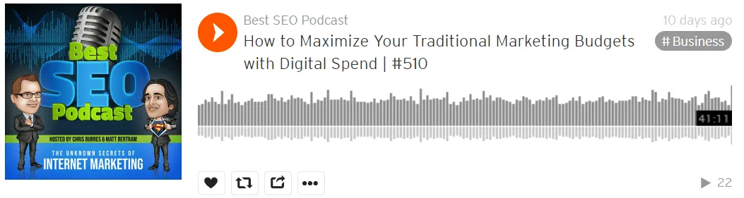 Their content is top-shelf stuff and nets them a lot of reaches. This podcast is for intermediate users who have a working knowledge of digital marketing best practices. But there are resources for the beginner as well, but you may need to search a bit.