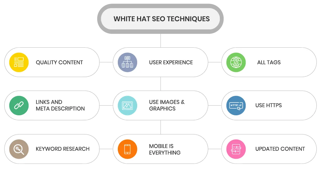 Black hat techniques include content spinning, link farms, keyword stuffing, and negative SEO. These techniques can lead to grave consequences. Some of them being: