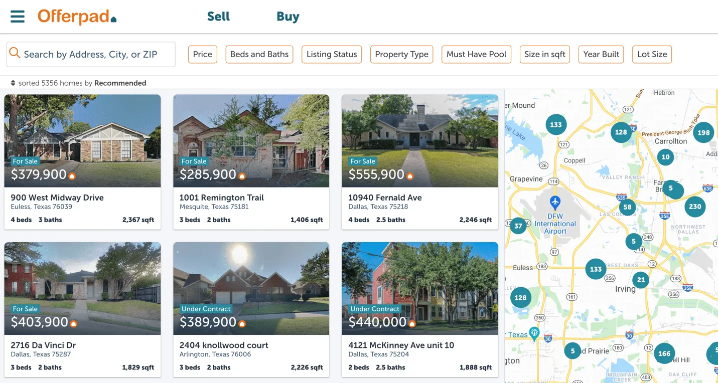 E.g., Refer to this image from Offerpad. They have listed all the properties with high-quality images and videos.