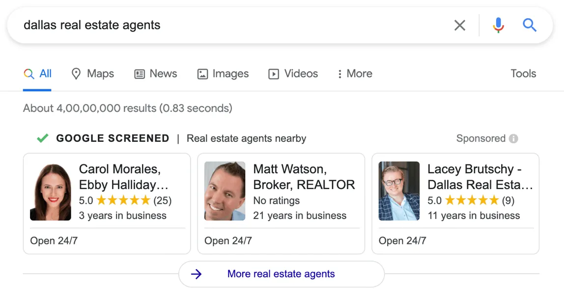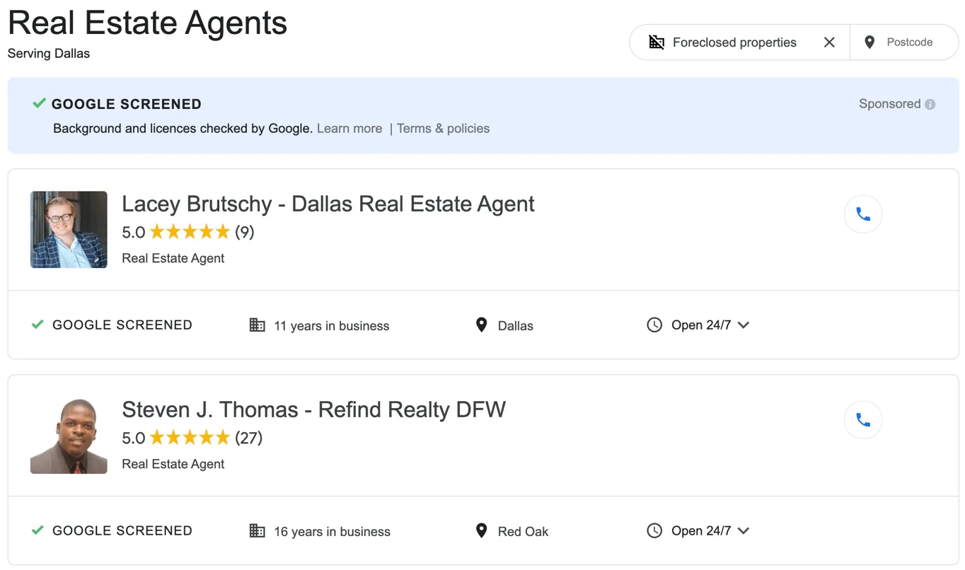 E.g., Check the Sponsored listings from realtors in Dallas.