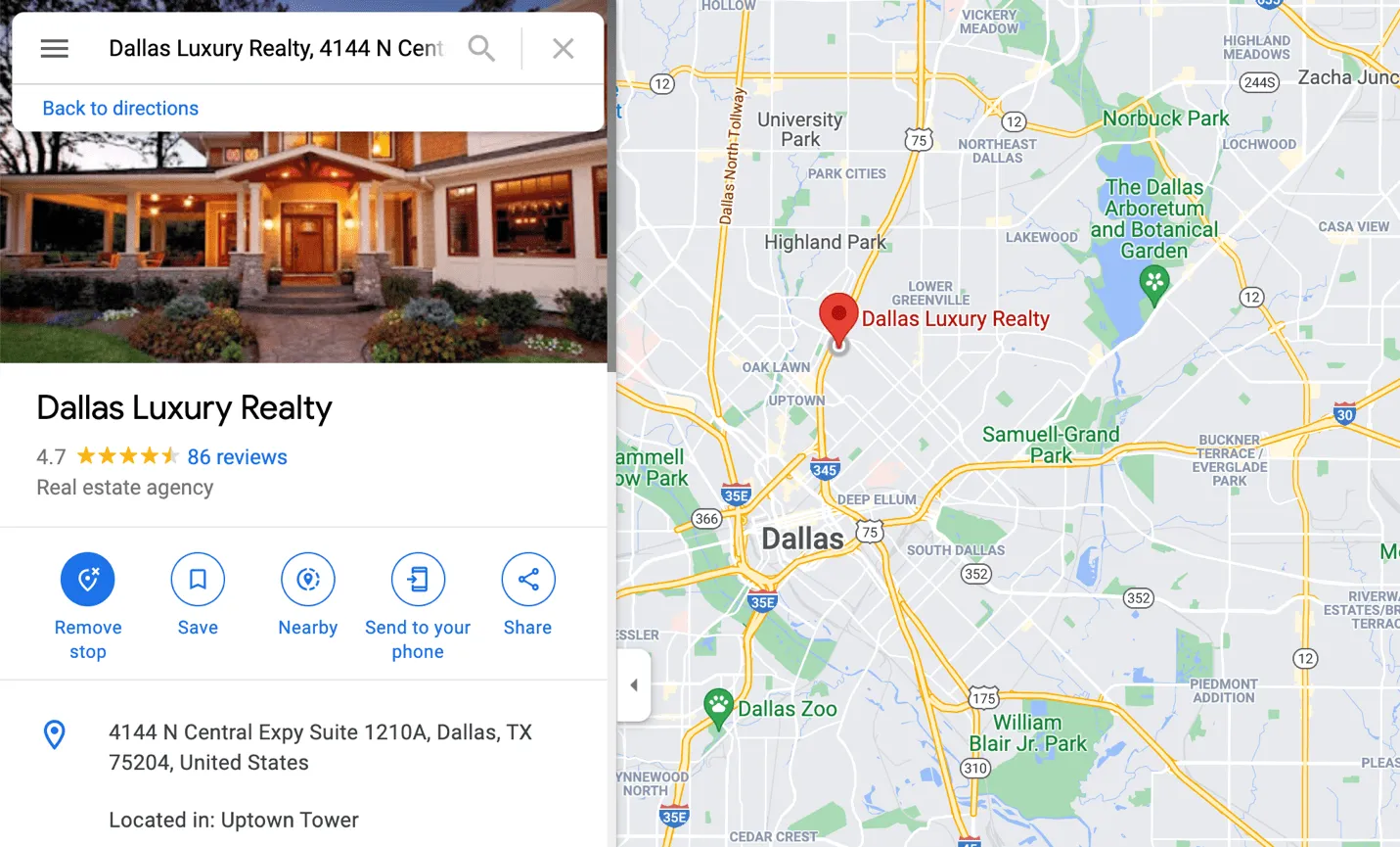 E.g., Check this Google Maps listing from Dallas Luxury Realty.