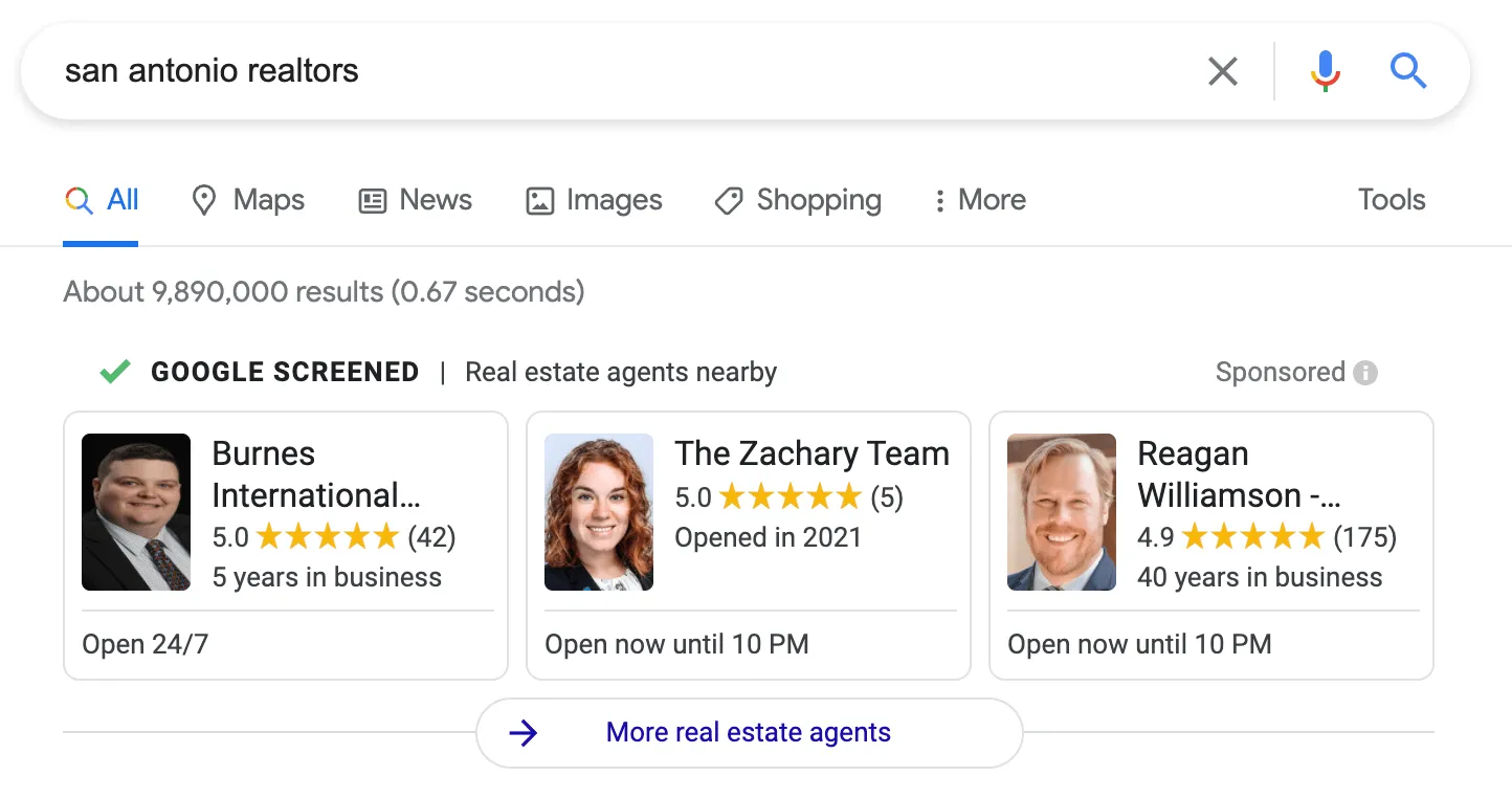When you search for “San Antonio Realtors” - Google will first display the sponsored results. Take a look at this screenshot.