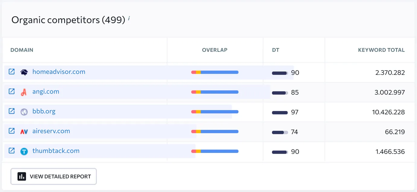 For example, look at this competitor analysis data from Seranking for an HVAC company in Dallas.