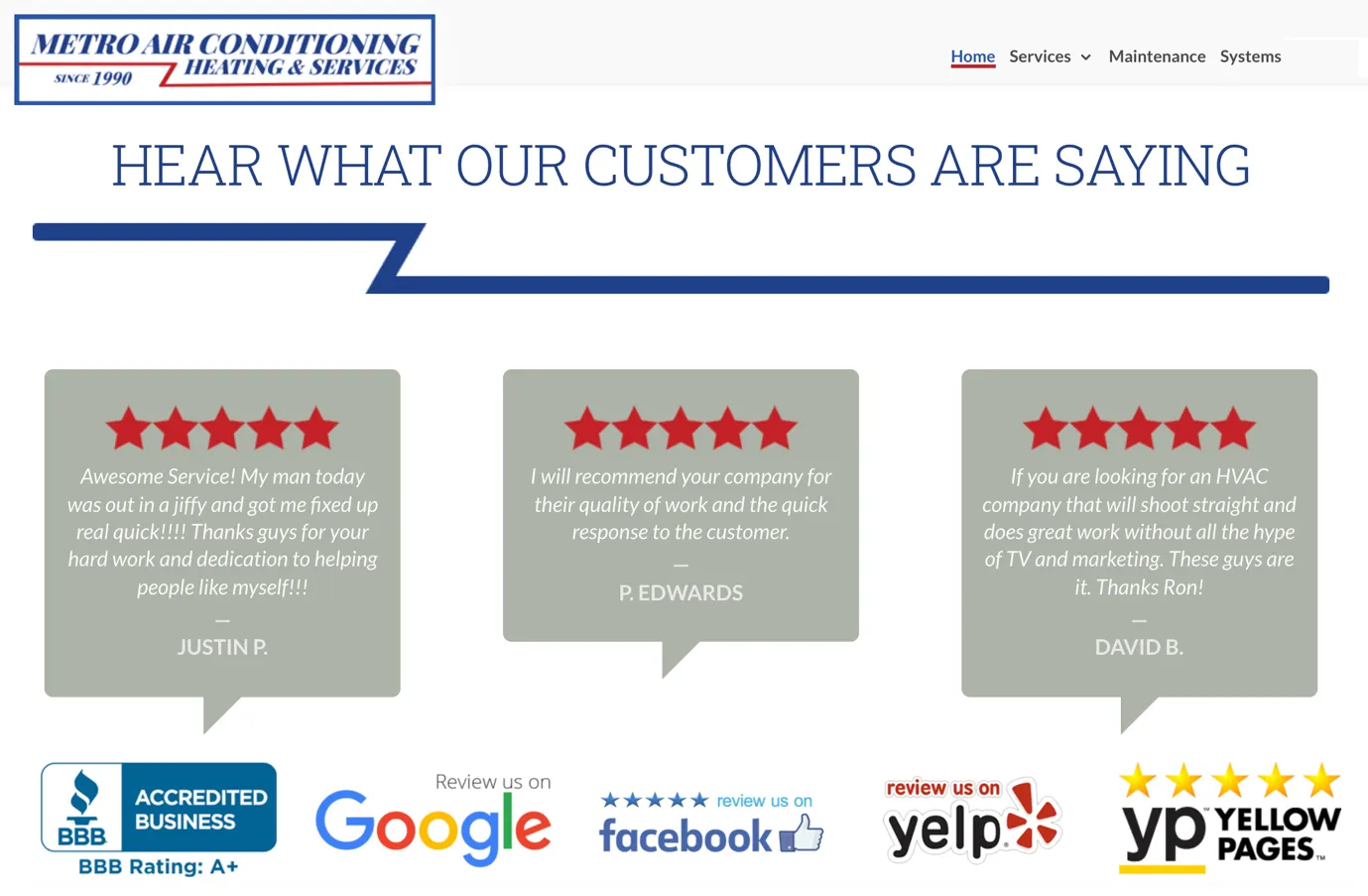 Have a look at this HVAC company displaying a lot of social proof on their website homepage.