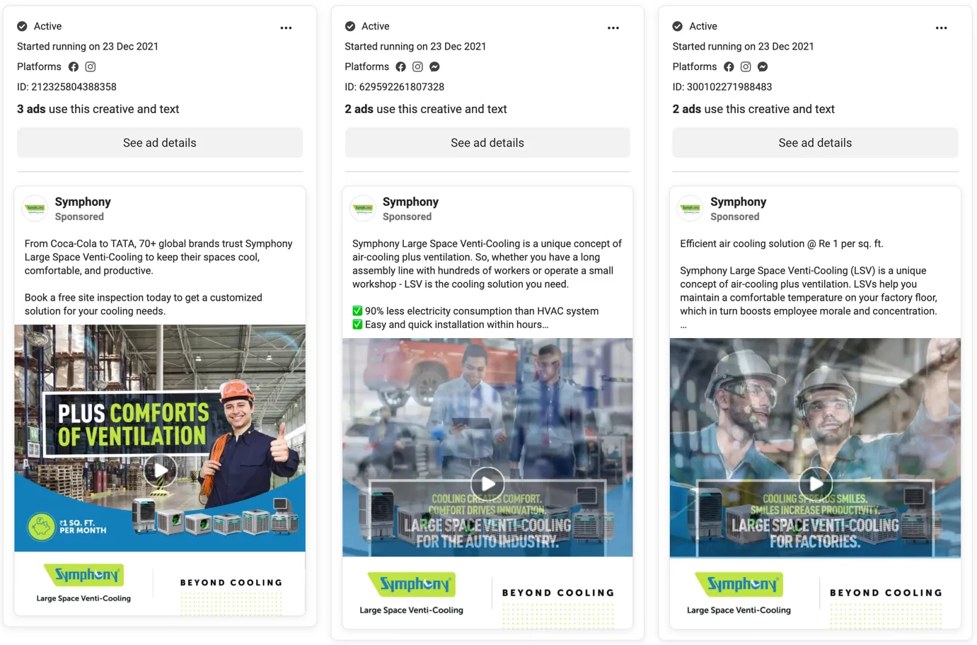 For example, look at this HVAC company running Facebook adverts for multiple posts.