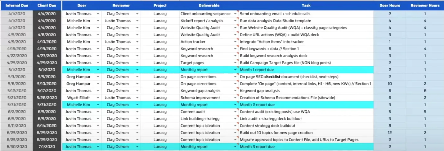 Have a look at this sample project management used by “The Blueprint” for SEO.