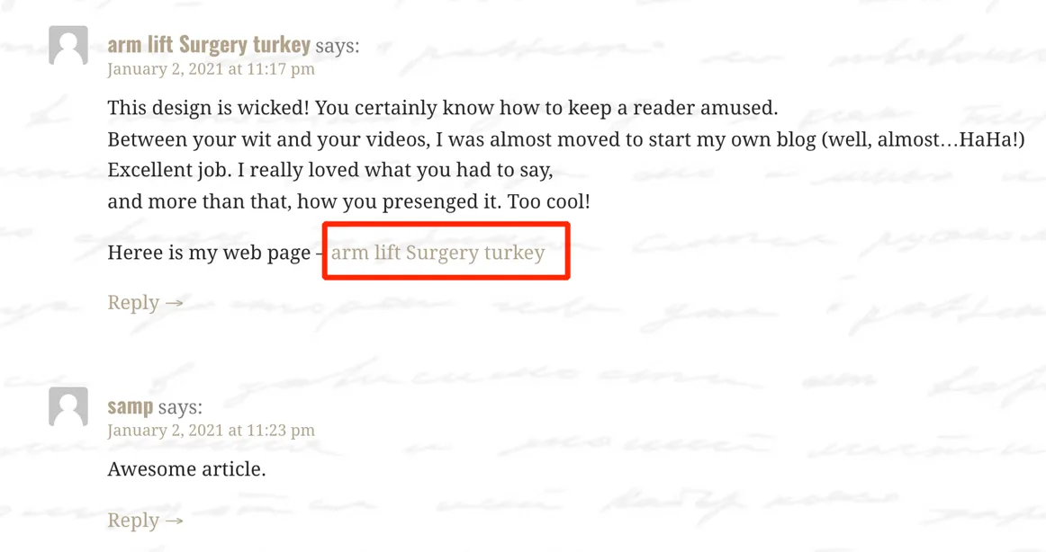 For example, look at these fishy links pointing to a website from blog comments.