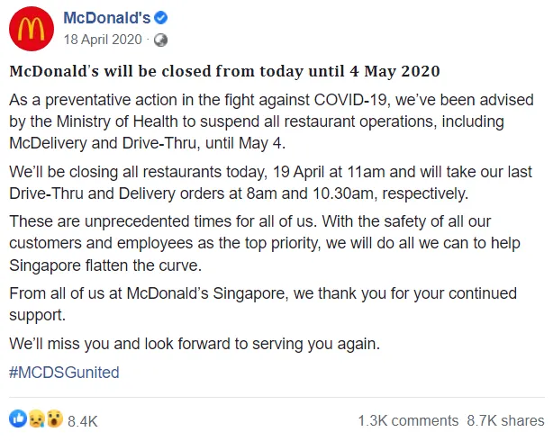 Here’s an example of how McDonald’s uses Facebook to communicate with customers: